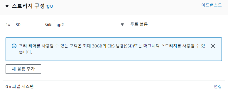 프리티어의 최대인 30GB로 설정했습니다.