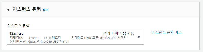 사양이 t2.micro만 가능