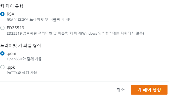 2-5단계 새 키 페어 생성