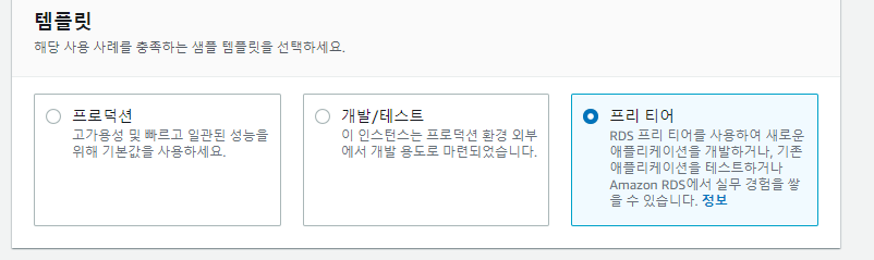 템플릿은 프리 티어로 설정합니다.