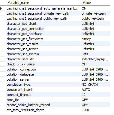 utf8mb4_general_ci 설정목록