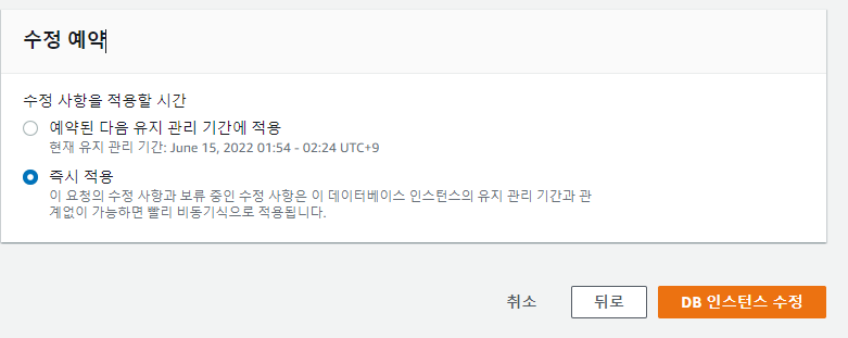 데이터베이스 -> 수정 -> 추가구성 -> DB 파라미터 그룹을 설정한 이름으로 변경