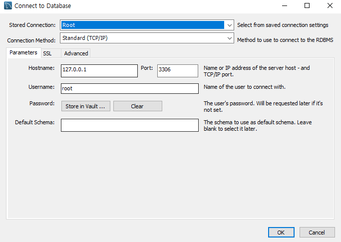 상단 옵션에 있는 Database -> Connect to database를 선택합니다. (윈도우 기준 단축키 Ctrl + U)