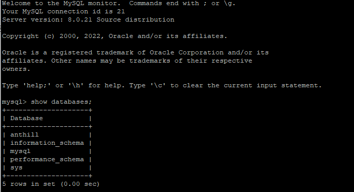 생성했던 anthill DB가 존재합니다.
