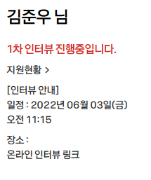 코딩 테스트는 5문제중 3.5문제를 풀었으며 예전에는 백준 실버문제도 어려웠지만 5개월간 꾸준히 문제를 풀었고 운이 좋게 아는 문제가 나와서 좋은결과가 나왔던 것 같습니다.
