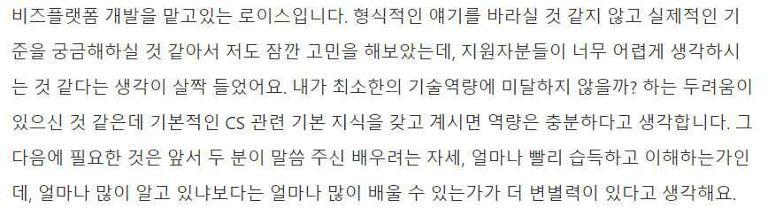 "기초 CS지식 + 얼마나 빠르기 습득하고 이해하는가"