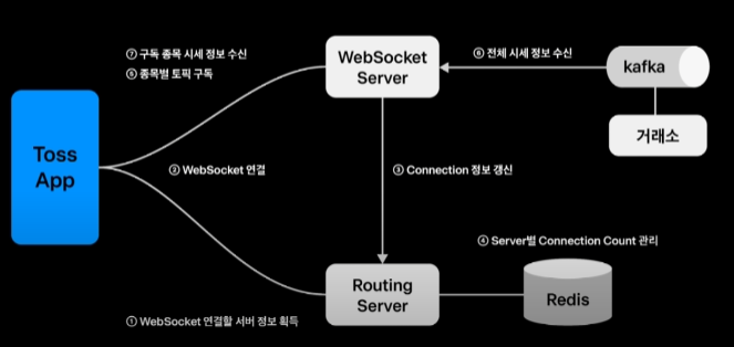 클라이언트는 웹소켓을 통해 화면에 노출되는 종목들에 대해 필요한 토픽을 구독 요청합니다.
