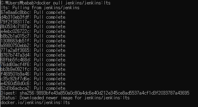 위의 명령어는 도커 Hub에서 Jenkins 이미지를 내려받는 명령어입니다.
