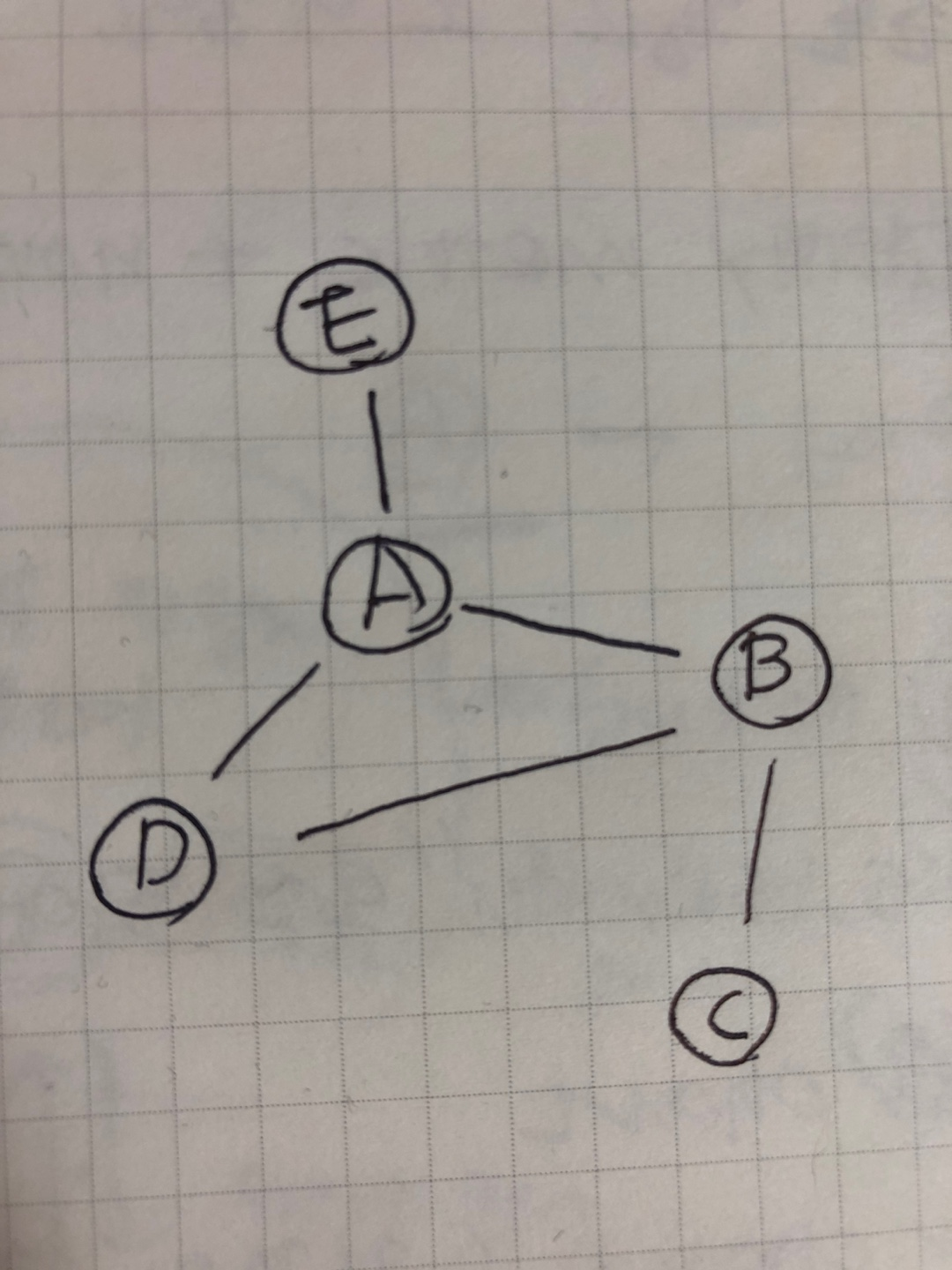 만약 도시가 5개 존재하고 A-B, B-C, A-D, B-D, E-A의 길이 존재합니다.