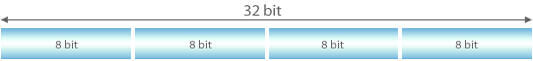 32비트 방식으로 8비트씩 4자리로 되어 있으며 각 자리는 온점으로 구분합니다.