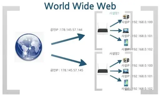 1. 외부 인터넷과의 통신 시에 공인 IP(공유기)를 통해 통신합니다.
