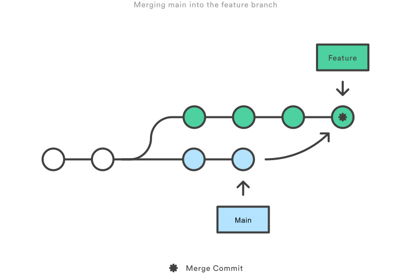 이때 다음과 같은 명령어로 Main 브랜치와 Feature 브랜치를 통합할 수 있습니다.