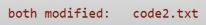 git status 결과 : code2.txt가 동시에 수정되었다는 의미입니다. 즉, code2.txt에서 충돌이 발생한 것입니다.