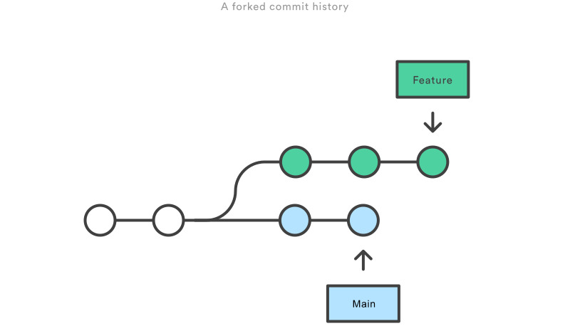 merge를 사용하면 다음과 같이 main 브랜치와 feature 브랜치가 평행적으로 움직이다가 합체됩니다.