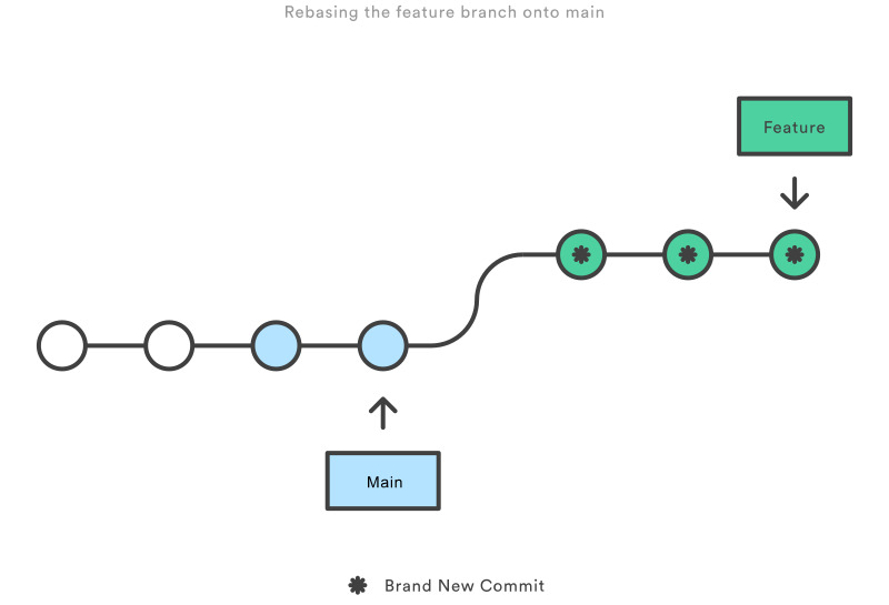 https://www.atlassian.com/ko/git/tutorials/merging-vs-rebasing 다음 명령어를 통해 feature 브랜치를 main 브랜치로 rebase 할 수 있습니다.