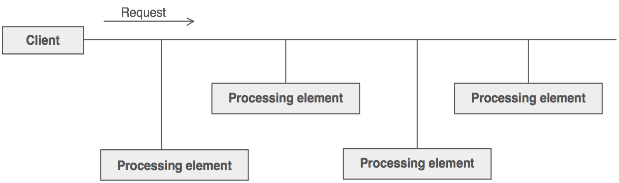 책임 연쇄 패턴 예시(https://donghyeon.dev/design%20pattern/2020/05/11/Chain-of-Responsibility-%ED%8C%A8%ED%84%B4/) 여러개의 클래스들이 클라이언트의 요청을 처리하기 위해 객체를 체인 형태로 전달하여 결합력을 낮춥니다.