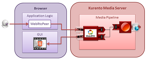쿠렌토에서 기본적으로 제공되는 미디어 요소 - WebRtcEndpoint는 WebRTC 미디어 스트림을 보내고 받을 수 있습니다.