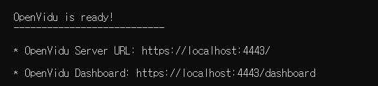 docker run -p 4443:4443 --rm -e OPENVIDU_SECRET=MY_SECRET openvidu/openvidu-server-kms:2.22.0위의 명령어를 실행하면 최종적으로 다음과 같은 출력을 볼 수 있습니다.