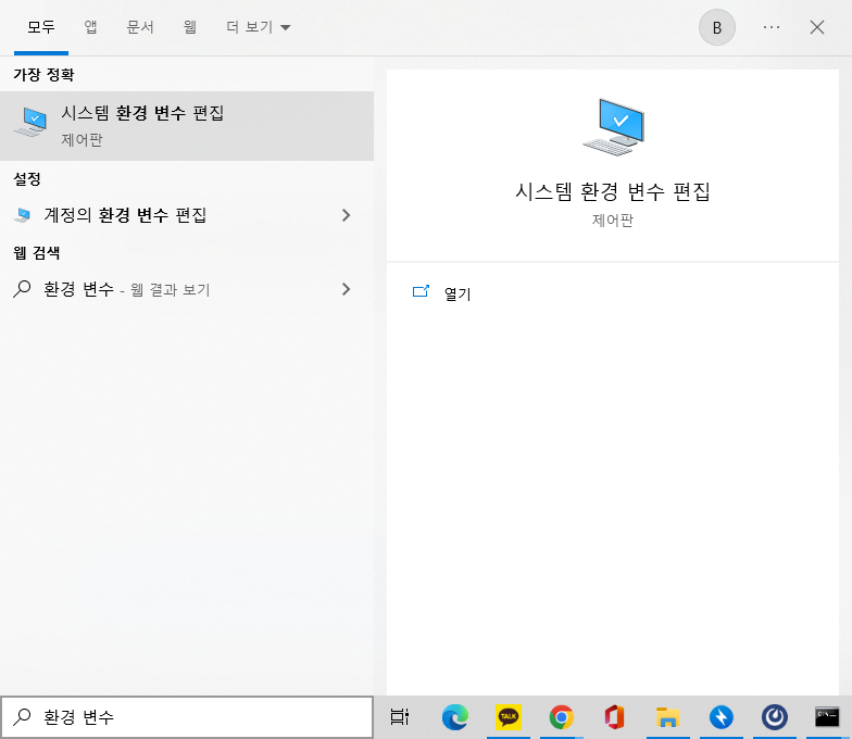 윈도에서 시스템 환경 변수 편집으로 이동합니다.