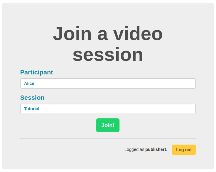 <form class="form-group" action="/session" method="post"> <p> <label>Participant</label> <input class="form-control" type="text" name="data" required="true"></input> </p> <p> <label>Session</label> <input class="form-control" type="text" name="session-name" required="true"></input> </p> <p class="text-center"> <button class="btn btn-lg btn-success" type="submit">Join!</button> </p> </form>SessionController가 세션 경로에서 요청을 받으면 상황이 흥미로워집니다.