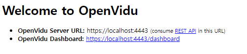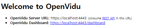 docker run -p 4443:4443 --rm -e OPENVIDU_SECRET=MY_SECRET openvidu/openvidu-server-kms:2.22.0https://localhost:4443 접속