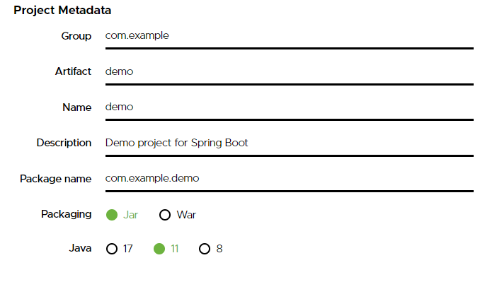 스프링 부트 스타터 사이트를 통해 스프링 프로젝트 생성