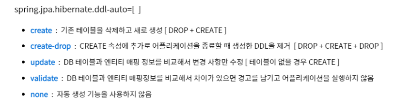 spring.datasource.username=root spring.datasource.password=1234spring.jpa.hibernate.ddl-auto의 속성들입니다.