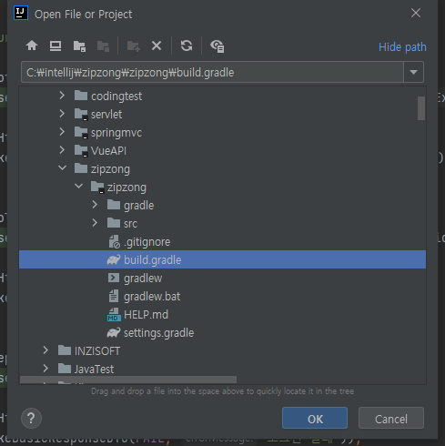 2-2 프로젝트의 build.gradle을 선택하고 OK