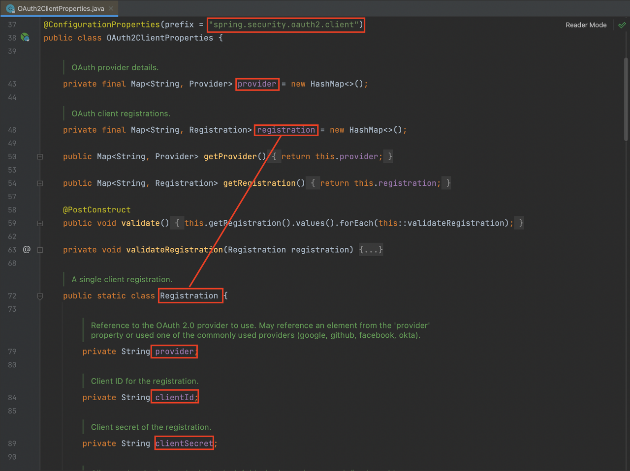OAuth2ClientProperties 둘이 매우 비슷한 구조인것을 알 수 있습니다.