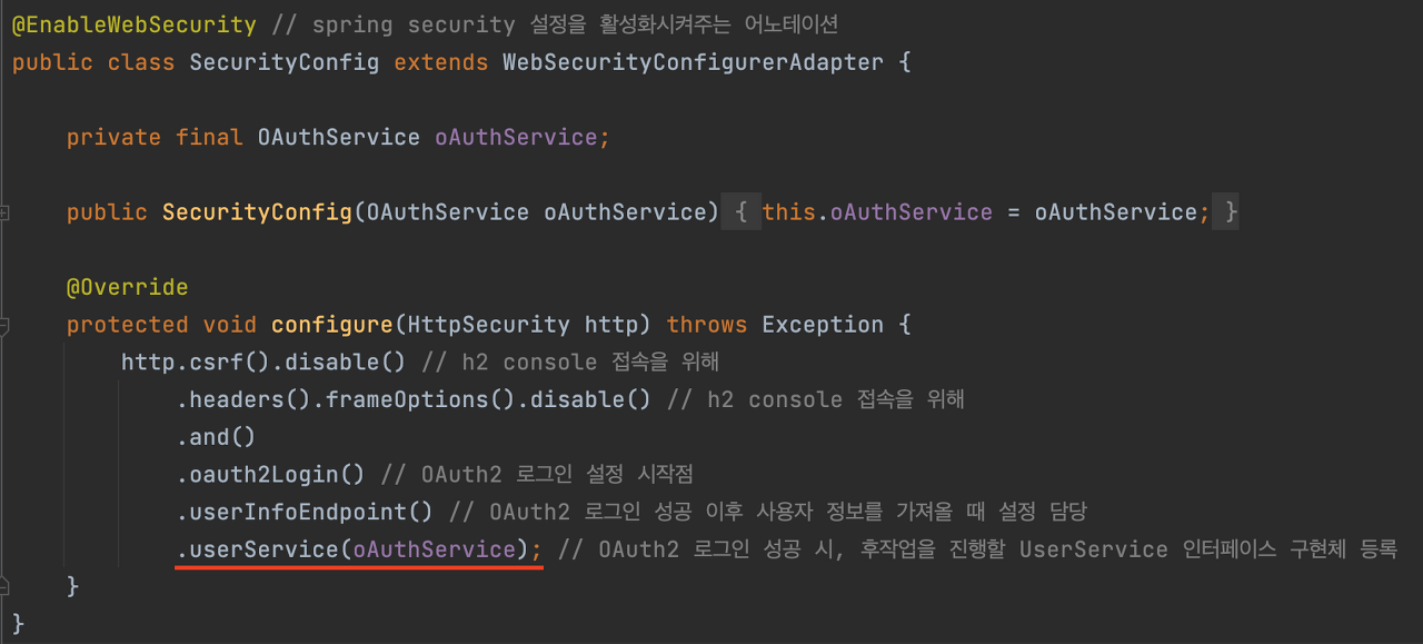 이 userService는 security config에서 설정해준 userService입니다.