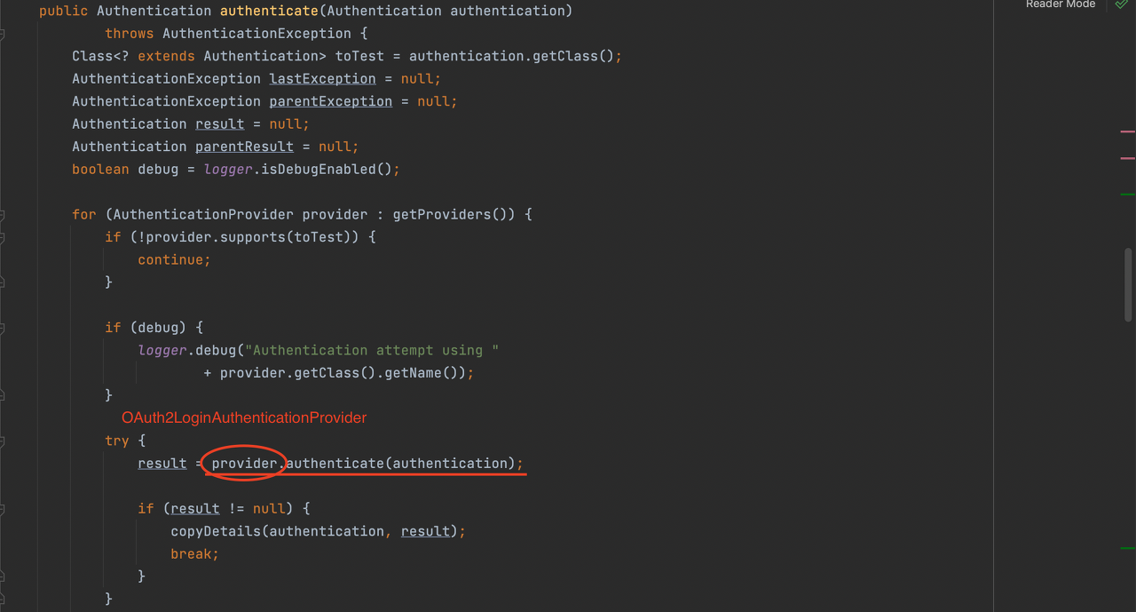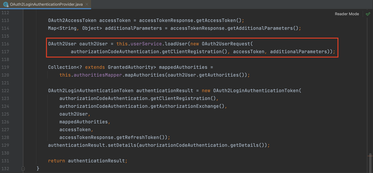 이때 여러 Provider 중 OAuth2LoginAuthenticationProvider가 이 과정을 수행합니다.