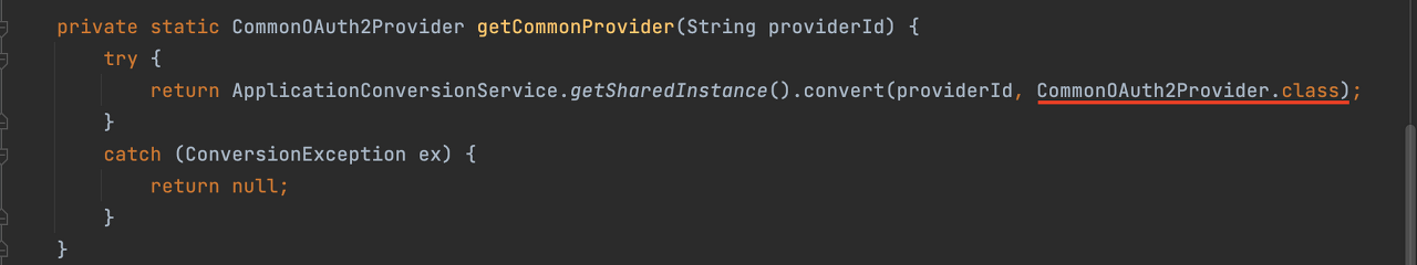 OAuth2ClientPropertiesRegistrationAdapter 이 코드를 분석하다보면 내부적으로 getCommonProvider 메서드를 호출합니다.