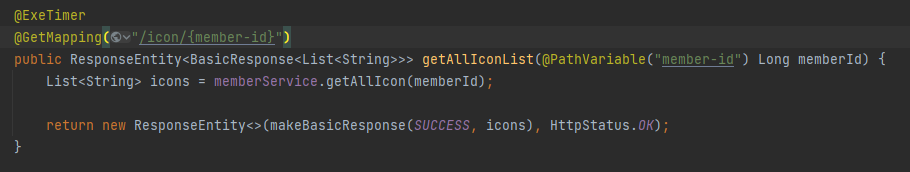 실행시간 측정 AOP를 적용시키기 위해 @ExeTimer를 추가합니다.