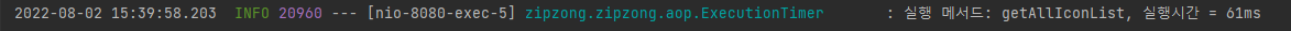 package zipzong.zipzong.aop; import lombok.extern.slf4j.Slf4j; import org.aspectj.lang.ProceedingJoinPoint; import org.aspectj.lang.annotation.Around; import org.aspectj.lang.annotation.Aspect; import org.aspectj.lang.annotation.Pointcut; import org.aspectj.lang.reflect.MethodSignature; import org.springframework.stereotype.Component; import org.springframework.util.StopWatch; @Slf4j @Aspect @Component public class ExecutionTimer { //JoinPoint를 어노테이션으로 설정 @Pointcut("@annotation(zipzong.zipzong.aop.annotation.ExeTimer)") private void timer(){}; //메서드 실행 전, 후로 시간을 공유 @Around("timer()") public void AssumeExecutionTime(ProceedingJoinPoint joinPoint) throws Throwable{ StopWatch stopWatch = new StopWatch(); stopWatch.start(); joinPoint.proceed(); stopWatch.stop(); long totalTimeMillis = stopWatch.getTotalTimeMillis(); MethodSignature signature = (MethodSignature)joinPoint.getSignature(); String methodName = signature.getMethod().getName(); log.info("실행 메서드: {}, 실행시간 = {}ms", methodName, totalTimeMillis); } }@PointCut을 통해 모든 JointPoint에서 적용될 JoinPoint를 지정합니다.