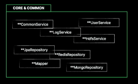 CORE, COMMON CORE, COMMON 내부에 구현되고 있는 Service와 Repository입니다.