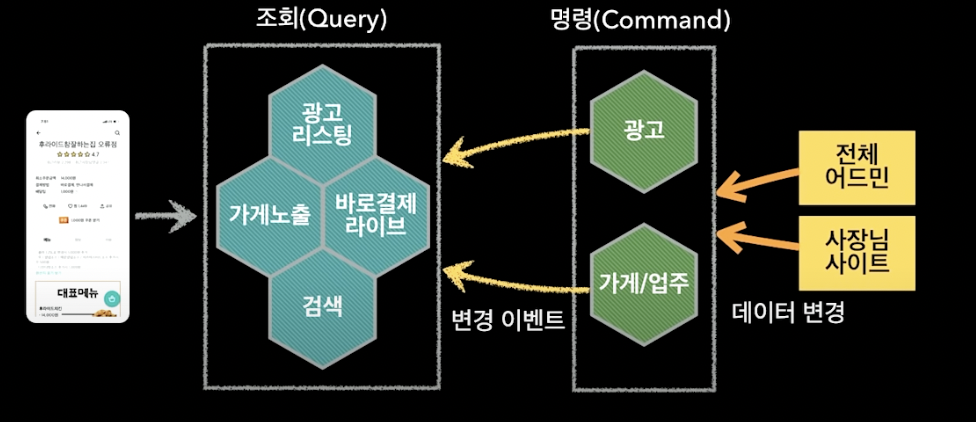 광고 리스팅, 가게 노출, 검색 등을 Query 사이드에 배치합니다.
