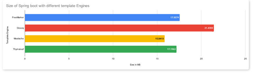 FreeMarker는 Thymeleaf와 비슷한 크기를 가지지만 Groovy는 21MB의 크기로 뒤쳐져있습니다.