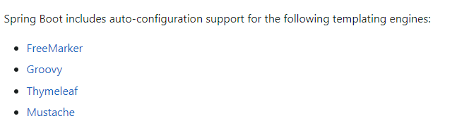 스프링부트는 아래와 같은 템플릿 엔진의 자동 환경 설정을 지원한다고 공식문서에 나와있습니다.