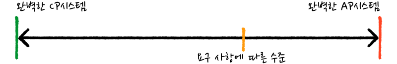 하지만 대용량 분산 데이터를 저장하기 위해서는 노드 간 통신이 실패하는 경우라도 시스템은 정상 동작해야 하기 때문에 CA 시스템은 존재할 수 없습니다. (또한 네트워크 장애가 절대 일어나지 않는 네트워크 구성은 존재할 수 없습니다.)