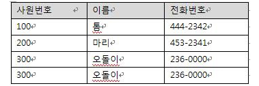 릴레이션 x 위의 그림은 사원번호 300번을 가진 오돌이의 행이 두 번 반복해서 나오는 모습입니다.