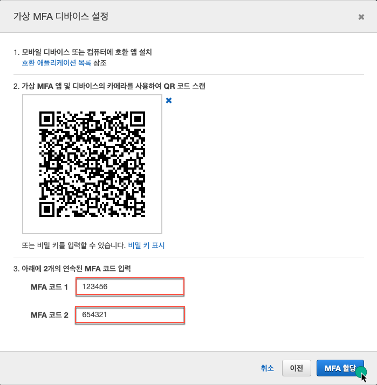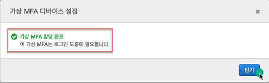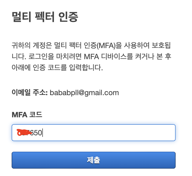 다시 로그인 시 MFA 코드를 입력해야 합니다.