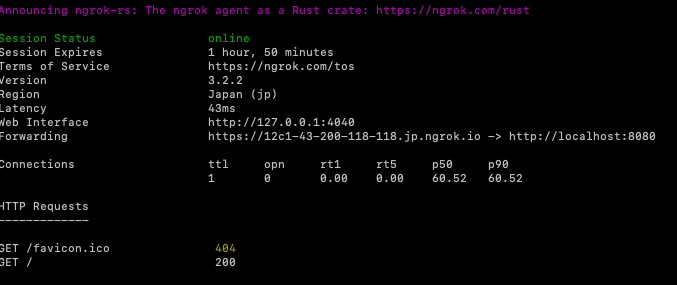 https://12c1-43-200 으로 시작하는 ngrok 도메인으로 접속하면 localhost에 띄운 웹 서비스에 접속할 수 있습니다.