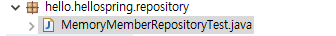 2. hello.hellospriong.repository 패키지에 MemoryMemberRepositoryTest 클래스를 생성합니다.