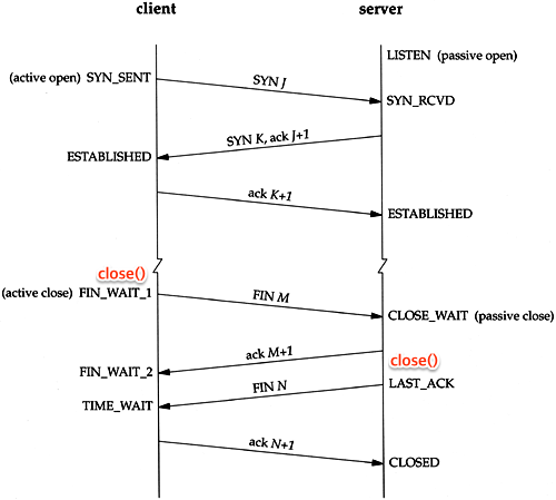 TCP 상태 전이 다이어그램 위의 다이어그램에서는 Server가 CLOSE_WAIT를 보냅니다.