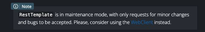 또한 Spring 5.0 이후부터 RestTemplate은 레거시 라이브러리로 간주되면 WebClient가 권장되는 추세입니다.
