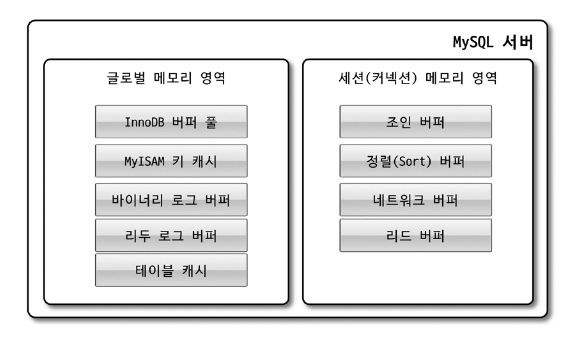 글로벌 메모리 영역은 MySQL 서버가 시작되면서 운영체제로부터 할당되며 모든 쓰레드에 공유됩니다.