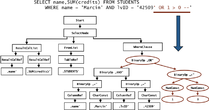 쿼리 파서는 기본적인 SQL 문장 오류를 체크하며 토큰으로 나누어 Parse Tree로 구성합니다.