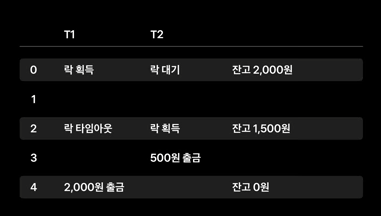 하지만 락 타임아웃 때문에 다음과 같은 일이 벌어질 수 있습니다.