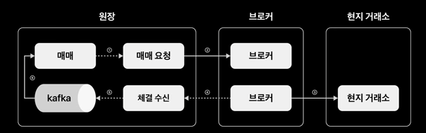 매매 서버 -> 매매 요청 서버 -> 브로커에게 전달 -> 브로커는 현지 거래소에 요청