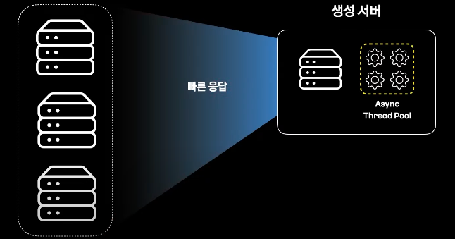 Async Thread Pool인 비동기를 활용한 아키텍처로 빠른 응답을 보장할 수 있습니다.
